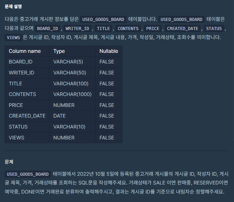 [My_SQL] Lv.2 조건에 부합하는 중고거래 상태 조회하기 본문