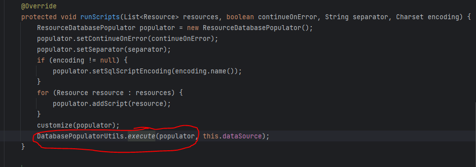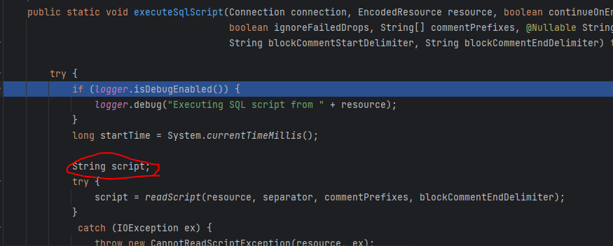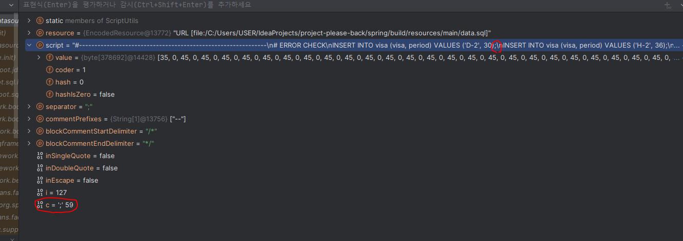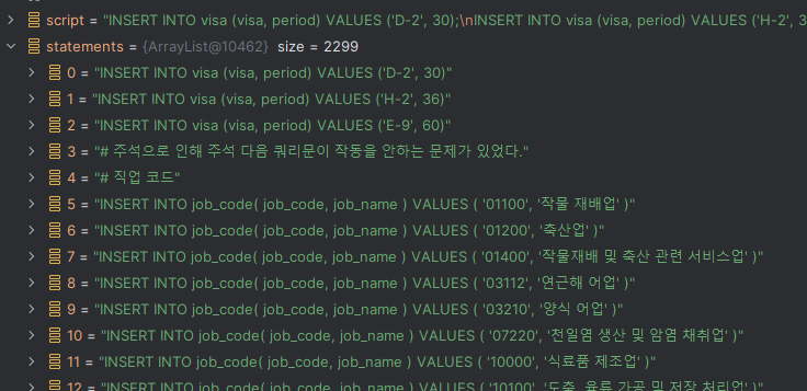 스크립트를 분리하는 splitSqlScript를 찾았다. 저 매개변수 값을 보자.